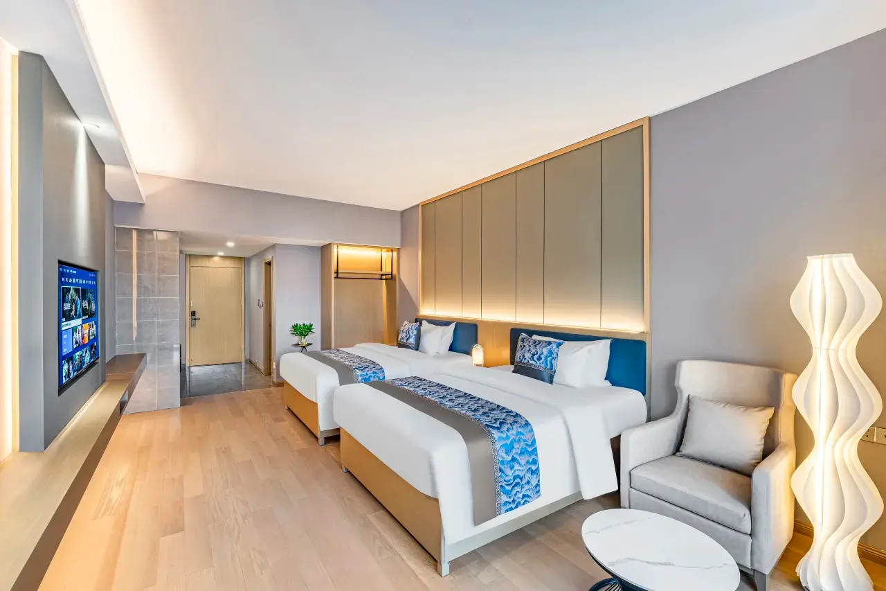 Offering a spacious 50–55 square meters of living space, this room type provides a bright and airy atmosphere complemented by stunning city views from the 7th to the 28th floors. With two comfortable 1.5m double beds and a comprehensive suite of amenities, it serves as an ideal base for exploring the coastal beauty of Zhuhai.